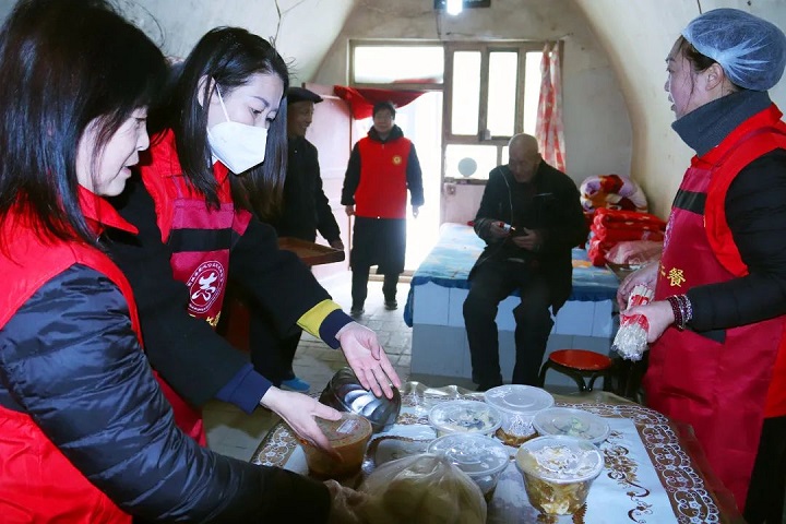 對(duì)于行動(dòng)不便的老人,志愿者們上門(mén)服務(wù),為他們送去熱氣騰騰的愛(ài)心午餐。